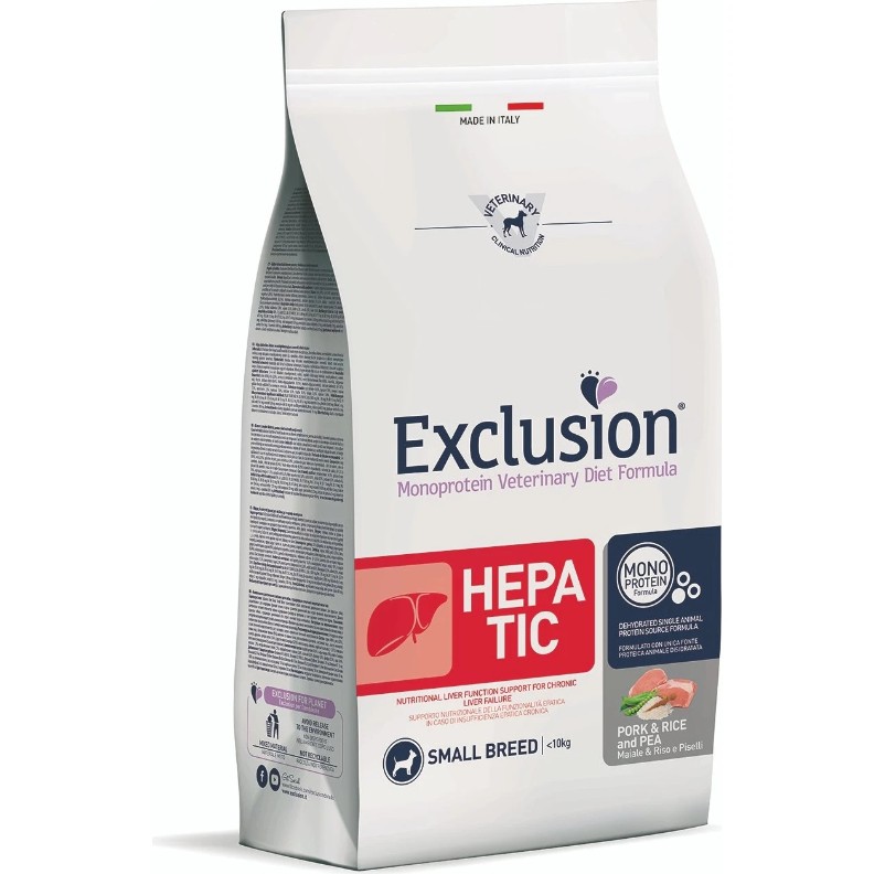 Hrană uscată pentru câini Exclusion Diet Hepatic Pork&Rice And Pea Small Breed 2kg