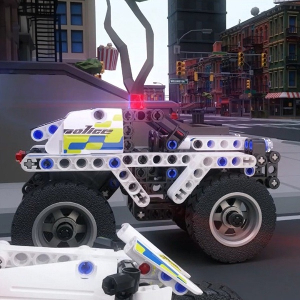 Setul de construcție iM Master Mechanical Master „Mașină de poliție”, cu inerție, este un set dinamic, inspirat de vehiculele de patrulare reale, ideal pentru joc și construcție.