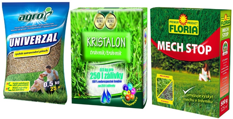 Set de compozițieSeminte de gazon Agro CS Gazon Universal 2 kg, Îngrășământ Kristalon 0,5 kg, Floria stop mușchi 0,5 kg