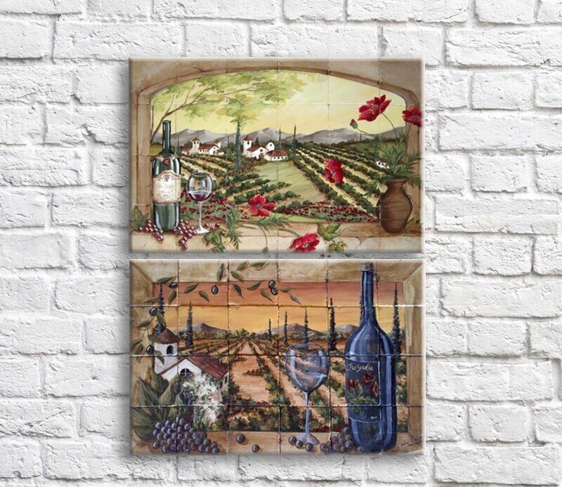 Pictură ArtPoster Wine bottle and grapes on the background of the field (3478778)