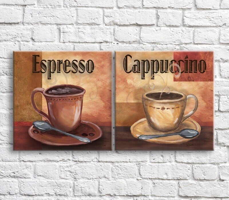 Pictură ArtPoster Cappuccino and espresso on an abstraction background (3478731)