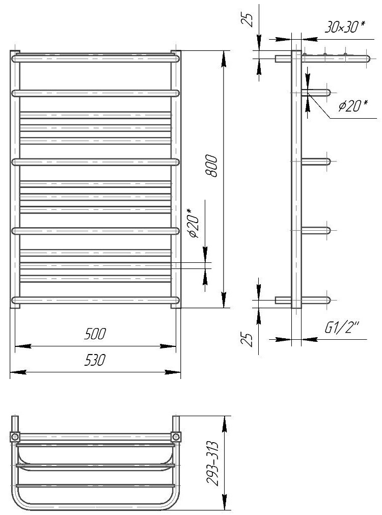 Uscător de prosoape Mario Premium Luxor 800х530/500