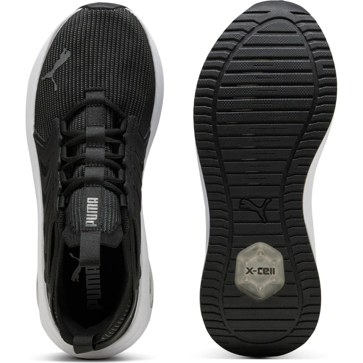 Tehnologia X-CELL în zona călcâiului asigură amortizare moale și absorbția șocurilor. Talpa intermediară ușoară din spumă face tranziția pasului mai lină și permite menținerea ritmului fără senzația de greutate. Talpa exterioară din cauciuc aderent oferă stabilitate pe suprafață, iar detaliile discrete cu brandul PUMA subliniază caracterul sportiv al perechii.