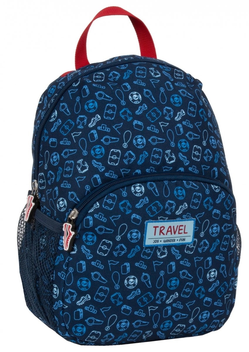 Are și un mâner mare pentru transportul rucsacului. Fermoarele sunt finisate cu extractoare decorative care sunt confortabile pentru copil. În plus, are două buzunare din plasă pentru o sticlă de apă sau o sticlă de apă.