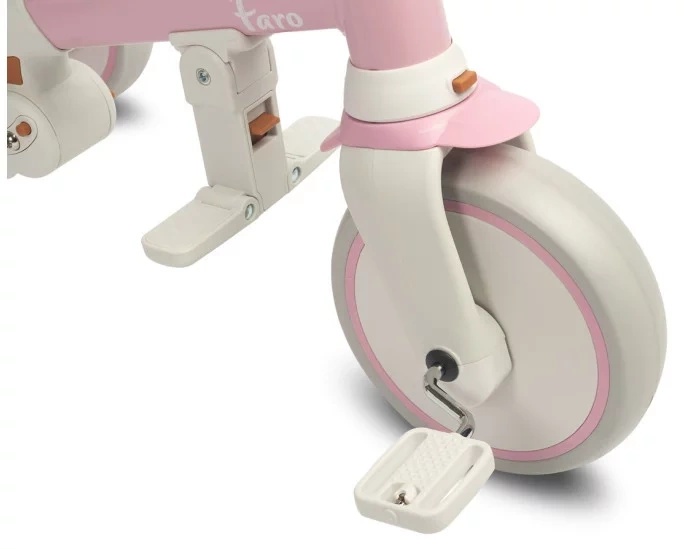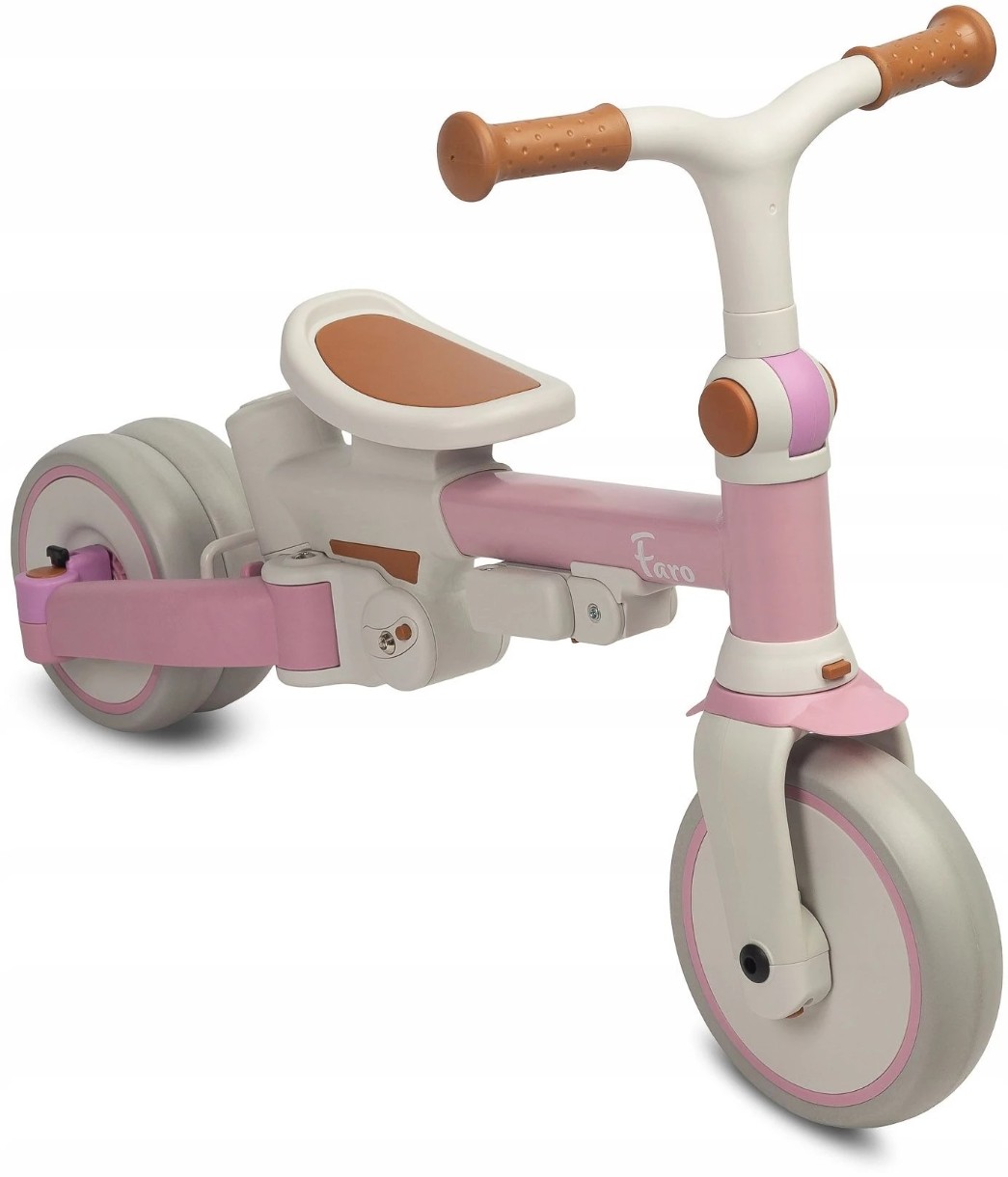 Faro este o tricicletă modernă multifuncțională. Modularitatea este cel mai mare avantaj al acestei biciclete, lucru apreciat atât de părinți, cât și de copii. Cei mai mici o pot folosi ca o tricicletă clasică, împinsă de părinți – ideală pentru plimbări mai lungi. Copilul poate merge independent, iar atunci când obosește, scaunul se poate roti rapid cu fața spre părinte, iar spătarul se poate înclina într-o poziție de odihnă. Pe spatele spătarului se află un buzunar practic, ideal pentru obiectele mici necesare în timpul plimbărilor. Copiii mai mari pot folosi Faro ca tricicletă sau bicicletă de echilibru. Cu doar câteva mișcări (fără a folosi chei), se pot comuta între aceste funcționalități. În plus, Faro are un cadru semi-pliabil, ceea ce permite depozitarea sa chiar și în portbagajul unei mașini mici.