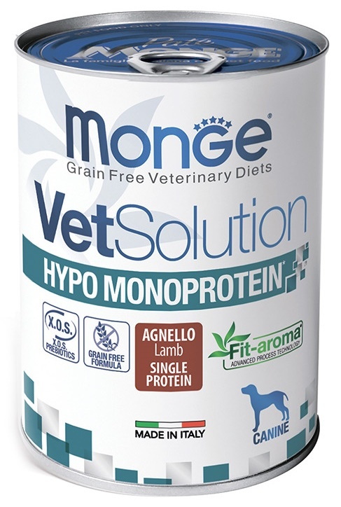 Hrană umedă pentru câini Monge Superpremium VetSolution Dog Hypo Monoprotein Lamb 400g