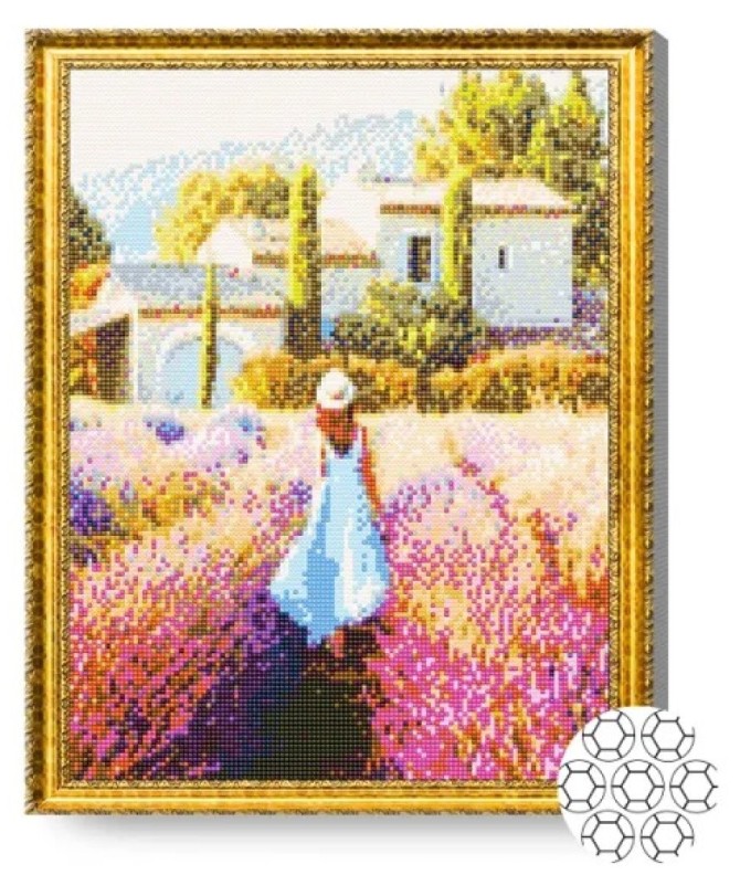 Pictura cu diamante după numere Art Gallery Premium Fată în câmpul de levănțică 40x50cm (GA82476)