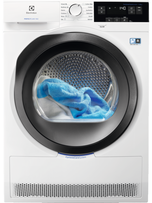 Cel mai bun uscator de rufe al nostru PerfectCare 900 cu Sistem CycloneCare permite hainelor sa fie pretuite pe deplin si sa fie uscate cu aer in mod uniform si delicat pe toate partile. In sfarsit, o tehnologie lider de piata care se asigura de pastrarea formei, aspectului si catifelarii minunate a stilului tau.