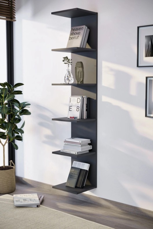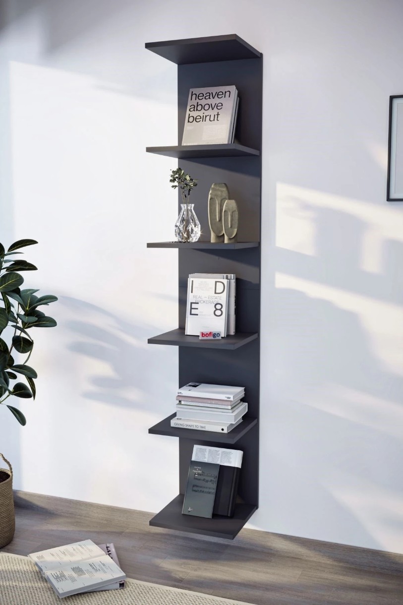 Etajeră de perete 15-07-08 este o soluție modernă și practică pentru organizarea și decorarea spațiului în living, dormitor sau birou. Designul vertical și suspendat permite economisirea spațiului și oferă un aspect aerisit și elegant interiorului.