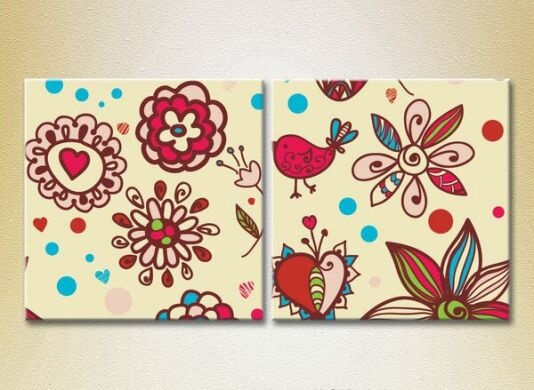 Pictură ArtPoster Texture Burgundy flowers and birds (2225891)