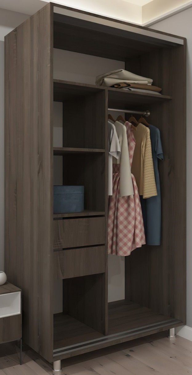 Dulap cu uşi glisante Bafimob D-120 Glass+Sakura Truffle