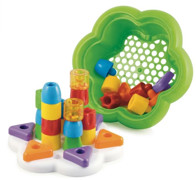 Creat cu un material moale și sigur și cu forme mari rotunjite, Daisy Box a fost special conceput pentru copii și copii mici. Pot să umple găurile în aspect sau să le adune pentru a construi tot felul de turnuri colorate. Elementele cu prindere ușoară au forme și culori diferite pentru a stimula percepția vizuală și coordonarea mâinilor și a ochilor, precum și pentru a dezvolta abilitățile motorii și dexteritatea timpurii. Kitul include o găleată mare de flori pentru a stoca cu ușurință toate articolele.