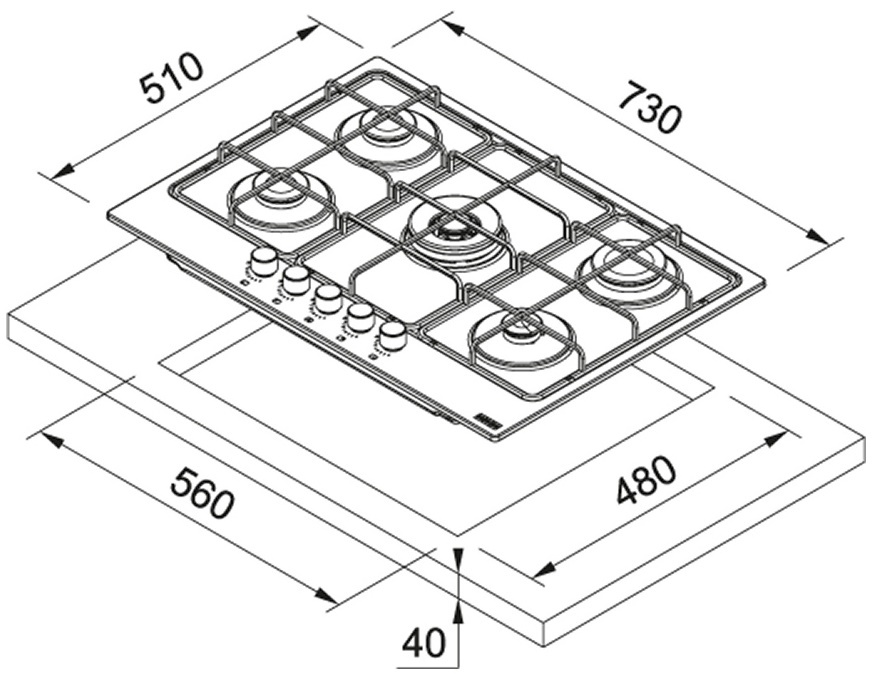 Plită incorporabilă cu gaz Franke FHSM 755 4G DC XS C