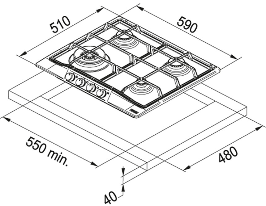 Plită incorporabilă cu gaz Franke FHTL 604 3G TC OA E