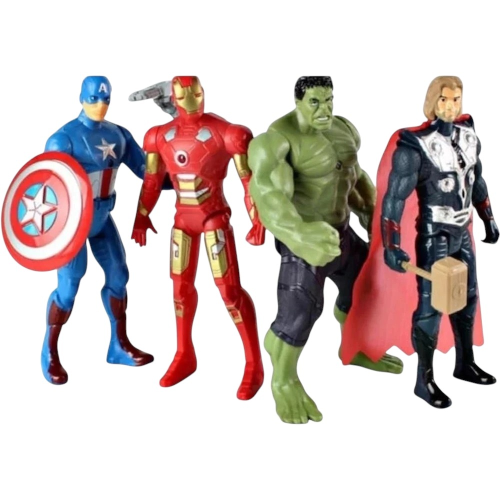 Adu-i copilului o lume plină de acțiune și imaginație cu setul de figurine – 4 eroi Avengers într-un singur pachet! Setul include personaje legendare: Captain America, Iron Man, Thor și Hulk – alegerea perfectă pentru orice fan al supereroilor.
