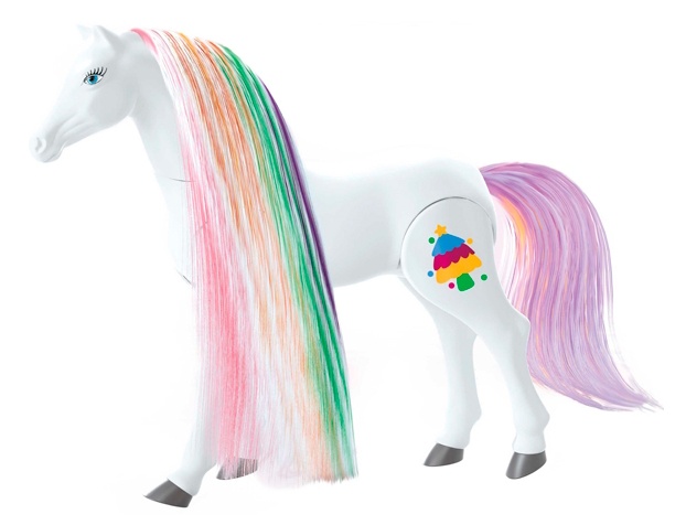 Un cal alb cu o coamă și o coadă lungă și multicoloră luxoasă va încânta fiecare fetiță și cu siguranță va fi utilă oricărei prințese. Caracteristica principală a jucăriei este un buton ascuns: dacă îl apeși, animalul va merge înainte. Datorită stabilității figurinei, poți purta păpuși mici pe el.