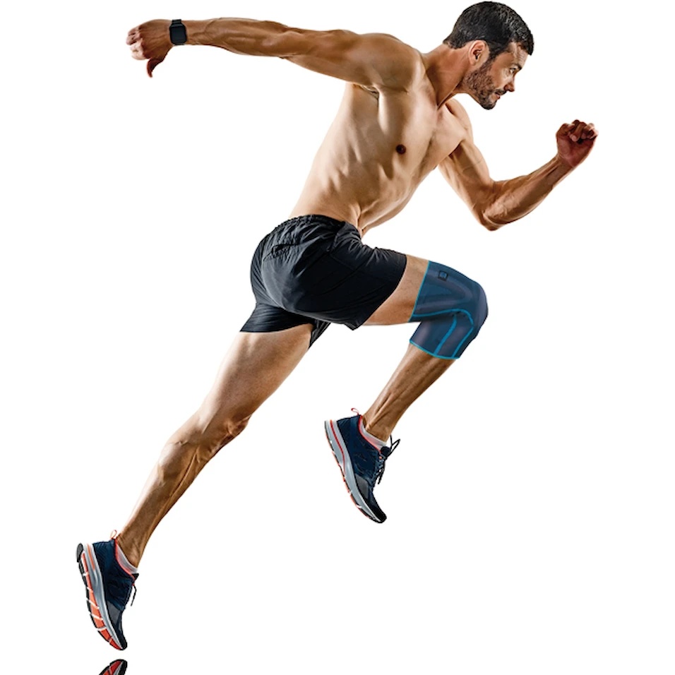 Sistema de anti-alunecare previne deplasarea ortozei, asigurând o fixare sigură în timpul mișcării. Forma anatomică asigură o potrivire mai bună și o libertate mai mare de mișcare. Zona moale din spatele genunchiului permite utilizarea ortozei pe parcursul întregii zile. Placa anatomică pentru rotulă centrează rotula, ajutând la distribuirea tensiunii și reducerea încărcăturii asupra genunchiului. Protejează tendoanele de suprasolicitare și minimizează riscul de leziuni. În combinație cu materialul de compresie, contribuie la reducerea inflamației și a vânătăilor. Inserțiile laterale de stabilizare oferă un control mediolateral mai bun. Materialul fără cusături asigură un confort mai mare fără frecare.