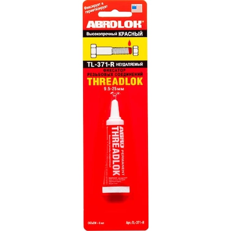 Fixativ pentru filete ABRO roșu, puternic 6 ml TL-371 se utilizează pentru fixarea sigură a șuruburilor de asamblare, șuruburilor de cutie de viteze, suspensiei, armăturii motorului și altor piese care nu necesită demontare frecventă. Compoziția are rezistență la substanțe chimice.