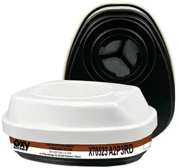 Filtrele de schimb pentru semimăștile X-70523 OXYLINE sunt elemente filtrante de înaltă eficiență, oferind protecție combinată împotriva vaporilor organici și a particulelor solide/lichide (clasa A2 P3 RD). Sunt complet compatibile cu semimăștile OXYLINE X-70523 și oferă un nivel ridicat de protecție în medii industriale, pe șantiere, în ateliere și la lucrul cu substanțe chimice. Instalarea ușoară, durabilitatea și fiabilitatea materialelor, împreună cu confortul la respirație, fac aceste filtre alegerea ideală pentru utilizare prelungită și muncă în siguranță.