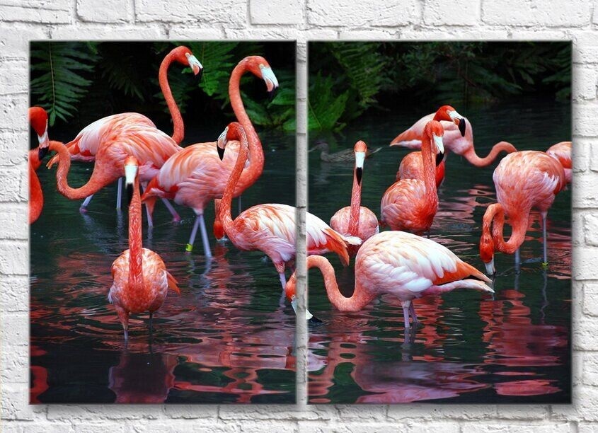 Pictură ArtPoster A flock of flamingos in a dark pond (3451168)