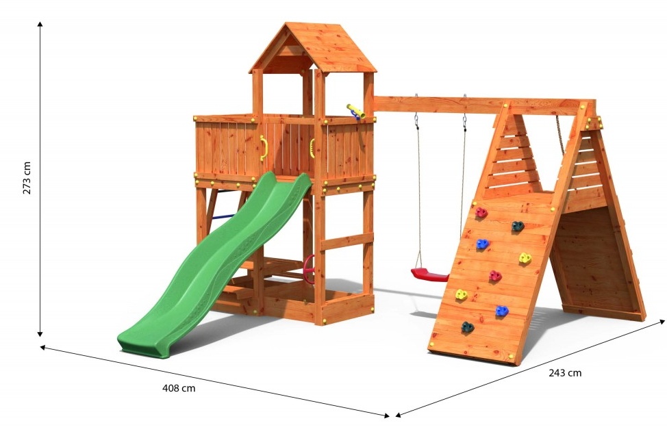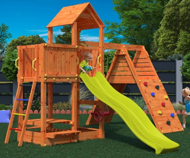 In settobogan, leagăne, nisipar, pod, perete de alpinism, masă