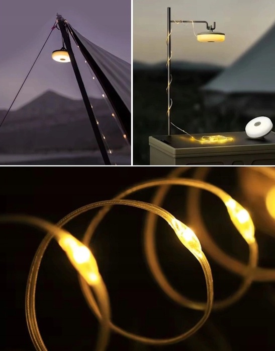 Lungimea ghirlandei luminoase este de aproximativ 8 metri, permițând iluminarea uniformă a unei suprafețe mari. Dispozitivul se rulează ușor și poate fi depozitat compact. Lanterna are mai multe moduri de iluminare, care permit ajustarea intensității și a efectului luminos.