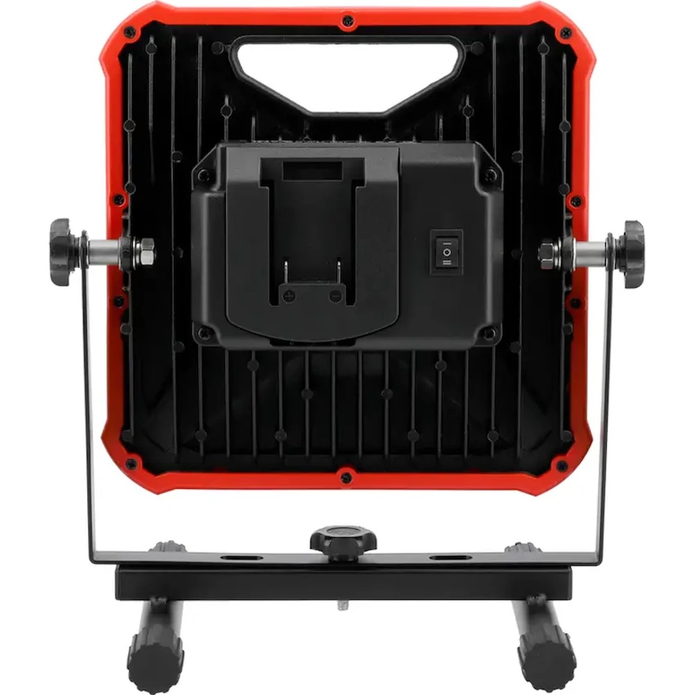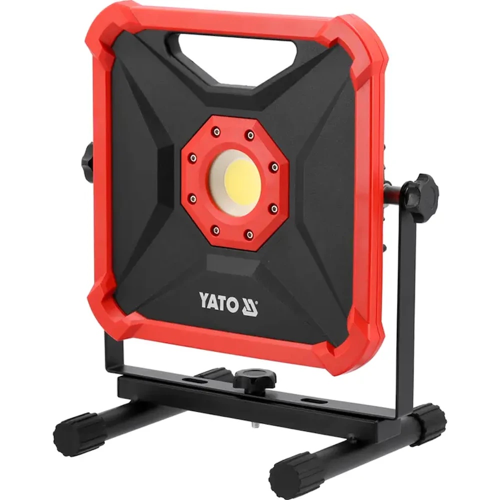 Мighty portable battery spotlight YATO YT-82965, suitable for use on construction sites, in workshops, and for camping lighting. Adjustable lighting angle and aluminum housing, resistant to mechanical damage and external influences.