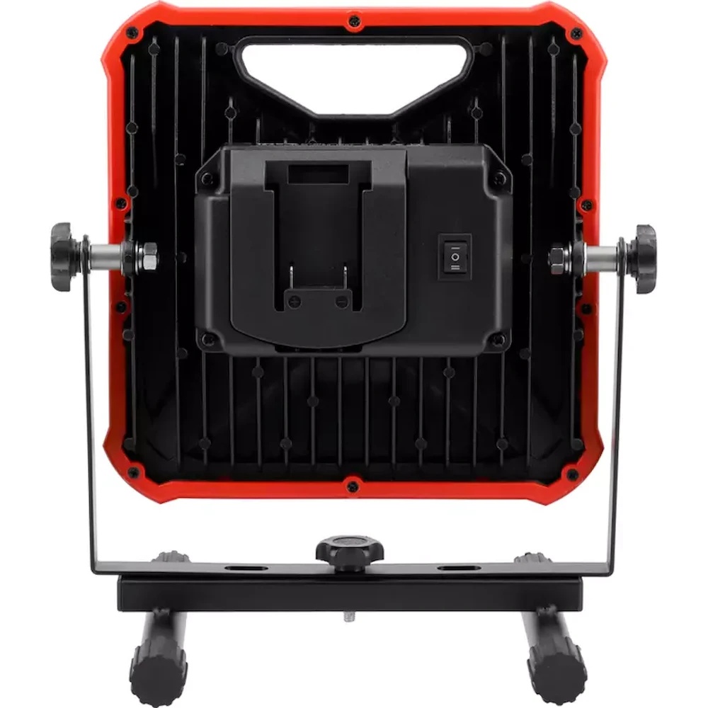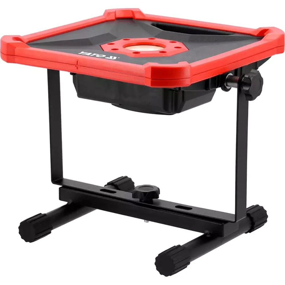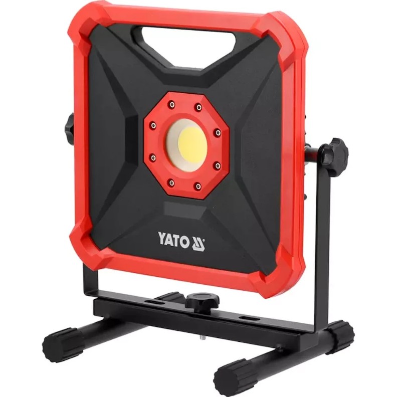 Puterea portabilă a proiectorului cu acumulator YATO YT-82966, potrivit pentru utilizarea pe șantiere, în ateliere și pentru iluminarea campingurilor. Unghiul de iluminare reglabil și carcasa din aluminiu, rezistentă la daune mecanice și la influențe externe.