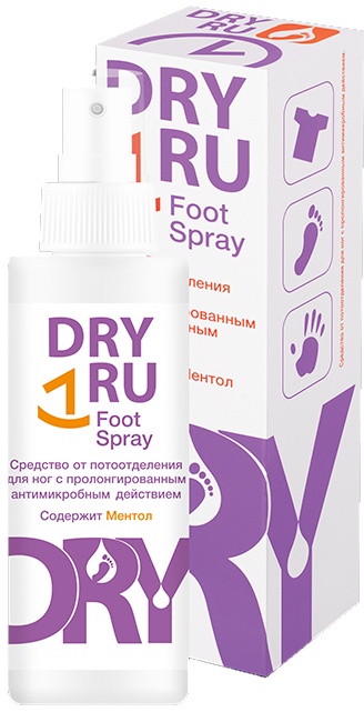 Acțiunea Dry RU Foot Spray se bazează pe interacțiunea clorurii de aluminiu hexahidrat cu proteina pielii, rezultând în formarea unui complex aluminiu-proteină care îngustează canalele glandelor sudoripare. Formula produsului asigură siguranța utilizării acestuia. Clorura de aluminiu hexahidrat nu se dizolvă în pori, nu pătrunde în corp și nu afectează funcționarea organelor interne și a sistemelor corpului. Formațiunile de aluminiu-bepkovye vor fi complet eliminate din corp prin pori la sfârșitul utilizării produsului. Funcțiile glandelor sudoripare nu sunt deranjate, corpul este redistribuit uniform de producție a transpirației prin porii altor părți ale corpului.