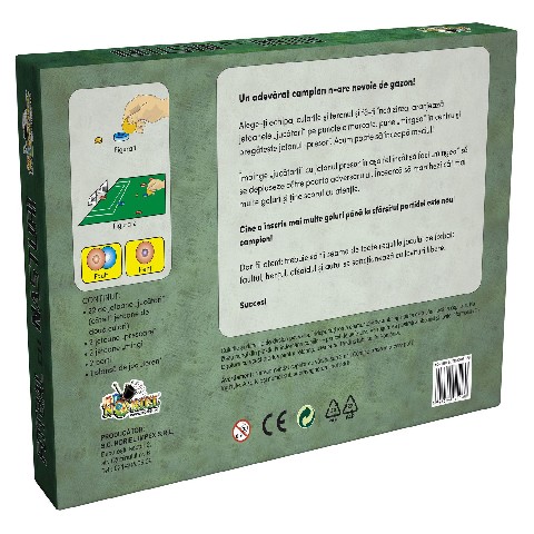 In set22 jetoane - jucatori in 2 culori, 2 jetoane presoare, 2 jetoane mingi, 2 porti care se asambleaza pe teren, 1 plansa de joc, regulile jocului