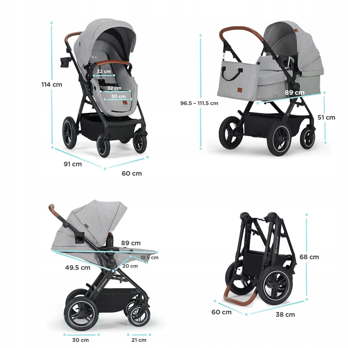Carucior Kinderkraft B-Tour 3in1 Light Grey (KSBTOU00LGR3000)