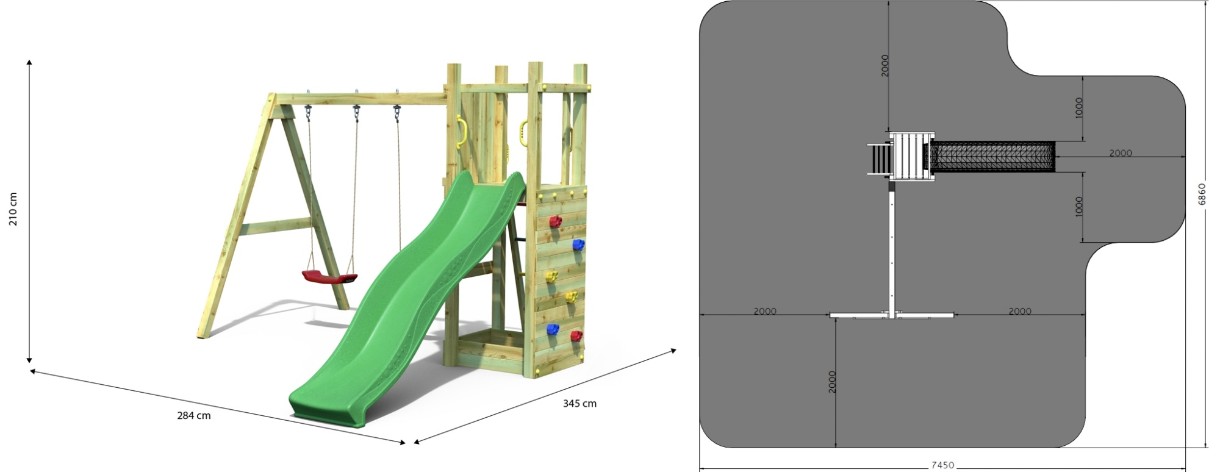 In settobogan, leagăne, scara, perete de alpinism