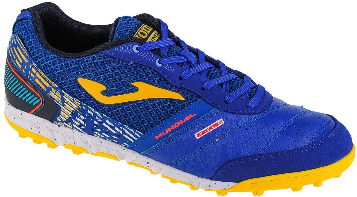 Ghetele Joma Mundial Turf sunt proiectate pentru teren sintetic și covor (Turf) și sunt potrivite pentru antrenamente și competiții profesionale. Modelul este confectionat din piele si ranforsat in fata, permitand jucatorului sa controleze pe deplin mingea. Clemele oferă durabilitate, flexibilitate și confort.