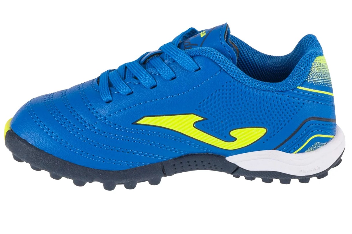 Ghetele de fotbal pentru copii Joma Toledo 24 Turf sunt conceputi pentru a se juca pe suprafete dure artificiale si lut. Pantoful se potrivește destul de bine piciorului și oferă o sensibilitate mai bună la contactul cu mingea. Centipedele sunt ușoare și respirabile, dar, în același timp, nu permit trecerea umezelii. Talpa este realizată din cauciuc de înaltă calitate folosind tehnologia DURABILITY, care previne uzura. Modelul a fost creat ținând cont de caracteristicile anatomice ale picioarelor copiilor.