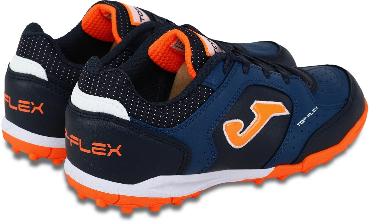 Ghete de fotbal Joma TOP FLEX originale sunt concepute pentru copii. Aceasta este alegerea optimă pentru cei care joacă fotbal pe suprafețe de lut și covoare. Durabilitatea produsului este garantată de utilizarea cauciucului de înaltă calitate pentru talpă. Talpa este realizată folosind tehnologia Durability. Talpa este distribuită uniform cu știfturi de cauciuc. Designul său special garantează o aderență excelentă pe suprafața terenului. Pentru a ajuta copilul să evite loviturile accidentale ale adversarilor și să dribleze mingea mai confortabil, producătorul a întărit degetul de la picior. Circulatia optima a aerului si racirea picioarelor este asigurata de tehnologia VTS, care presupune prezenta unor perforatii in incaltaminte.