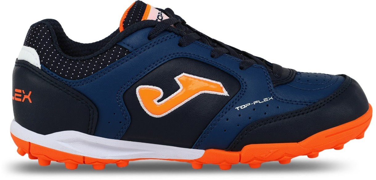 Ghete de fotbal Joma TOP FLEX originale sunt concepute pentru copii. Aceasta este alegerea optimă pentru cei care joacă fotbal pe suprafețe de lut și covoare. Durabilitatea produsului este garantată de utilizarea cauciucului de înaltă calitate pentru talpă. Talpa este realizată folosind tehnologia Durability. Talpa este distribuită uniform cu știfturi de cauciuc. Designul său special garantează o aderență excelentă pe suprafața terenului. Pentru a ajuta copilul să evite loviturile accidentale ale adversarilor și să dribleze mingea mai confortabil, producătorul a întărit degetul de la picior. Circulatia optima a aerului si racirea picioarelor este asigurata de tehnologia VTS, care presupune prezenta unor perforatii in incaltaminte.
