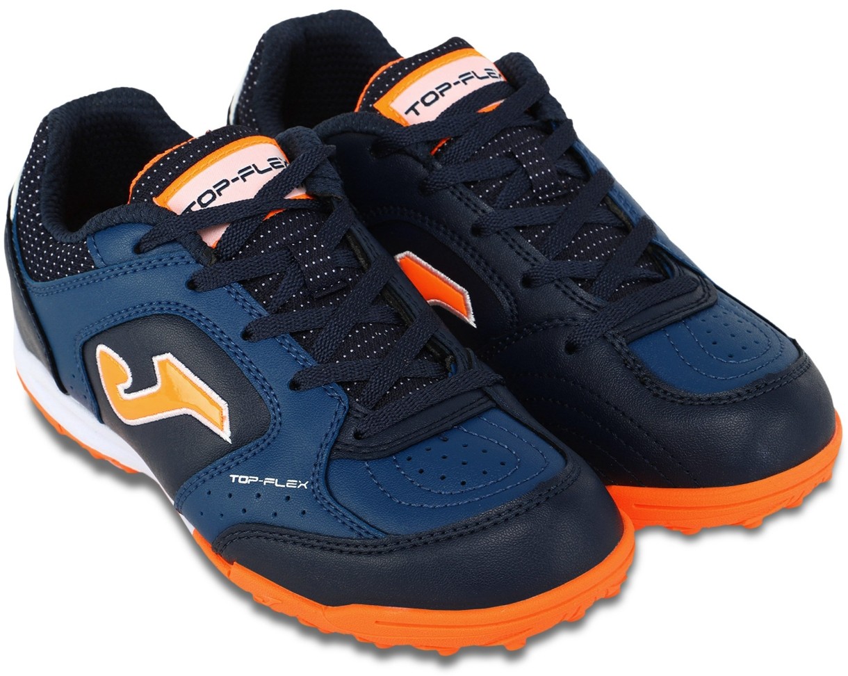 Ghete de fotbal Joma TOP FLEX originale sunt concepute pentru copii. Aceasta este alegerea optimă pentru cei care joacă fotbal pe suprafețe de lut și covoare. Durabilitatea produsului este garantată de utilizarea cauciucului de înaltă calitate pentru talpă. Talpa este realizată folosind tehnologia Durability. Talpa este distribuită uniform cu știfturi de cauciuc. Designul său special garantează o aderență excelentă pe suprafața terenului. Pentru a ajuta copilul să evite loviturile accidentale ale adversarilor și să dribleze mingea mai confortabil, producătorul a întărit degetul de la picior. Circulatia optima a aerului si racirea picioarelor este asigurata de tehnologia VTS, care presupune prezenta unor perforatii in incaltaminte.