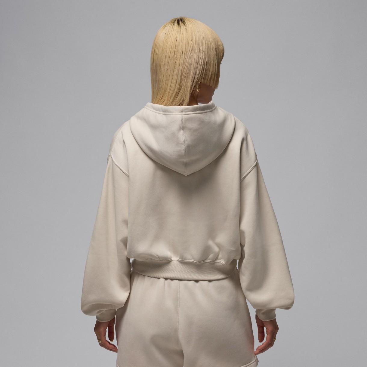 Fermoarul pe toată lungimea permite reglarea nivelului de confort și potrivire, iar buzunarele tip cangur sunt o soluție practică atât pentru depozitarea micilor obiecte, cât și pentru a vă ține mâinile la cald. Manșetele și tivul elastice, realizate în nervuri, fixează delicat hanoracul și subliniază linia curată a croielii, păstrând totodată senzația de lejeritate. Emblema brodată Jumpman pe piept conferă un accent distinctiv și subliniază apartenența la brandul legendar, adăugând o notă de rafinament sportiv.