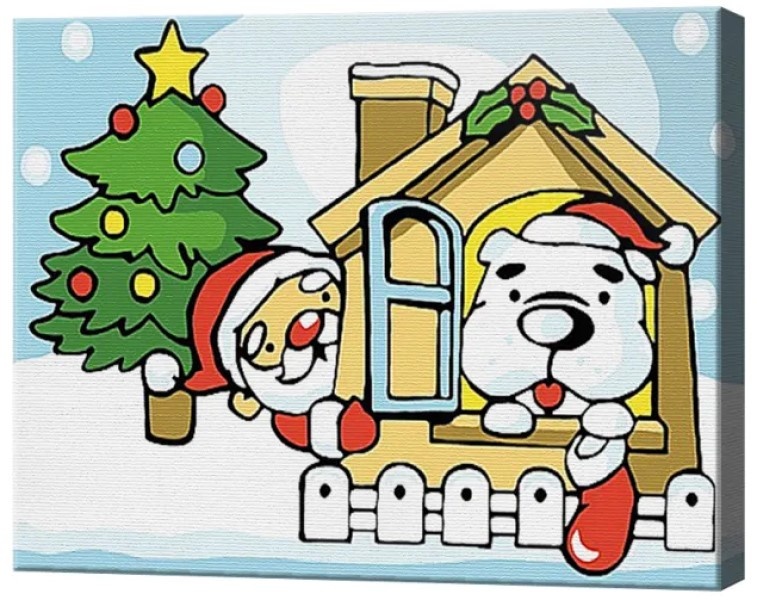 Tablou pe numere Art Gallery Premium Moș Crăciun și ursuleț CX3105