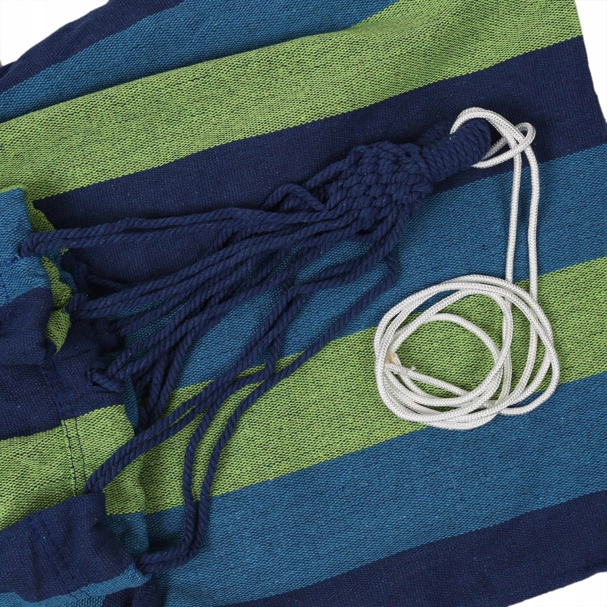 Acest hamac elegant va fi o completare perfectă pentru grădina, terasă sau balconul dumneavoastră. Cu dimensiunile de 200x100 cm, oferă un loc confortabil pentru relaxare în aer liber. Dungile roșii și albastre conferă hamacului un aspect atrăgător și modern.