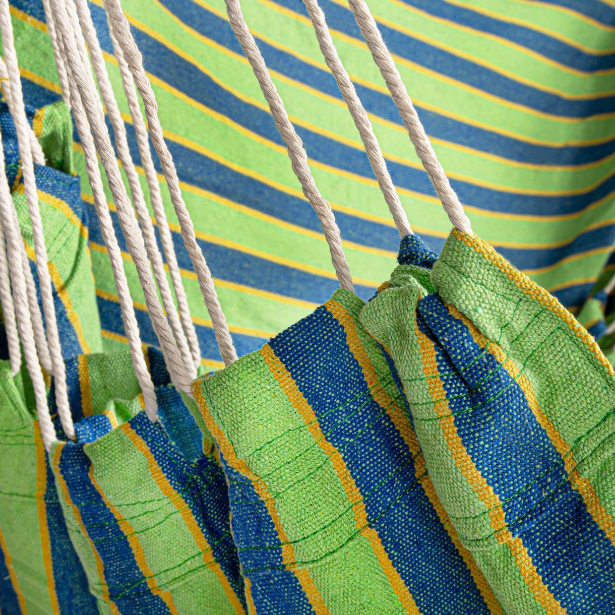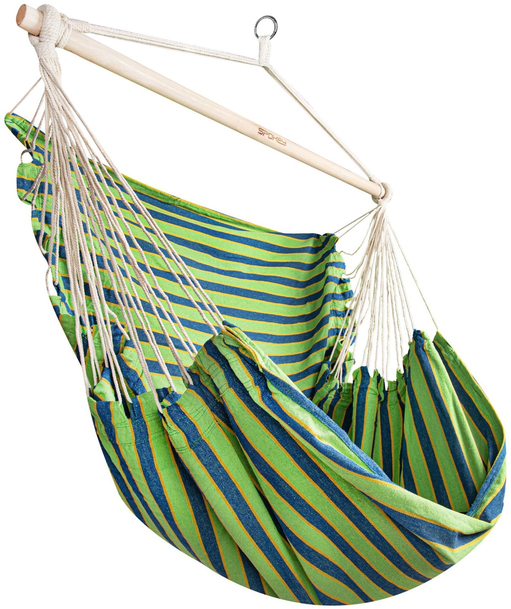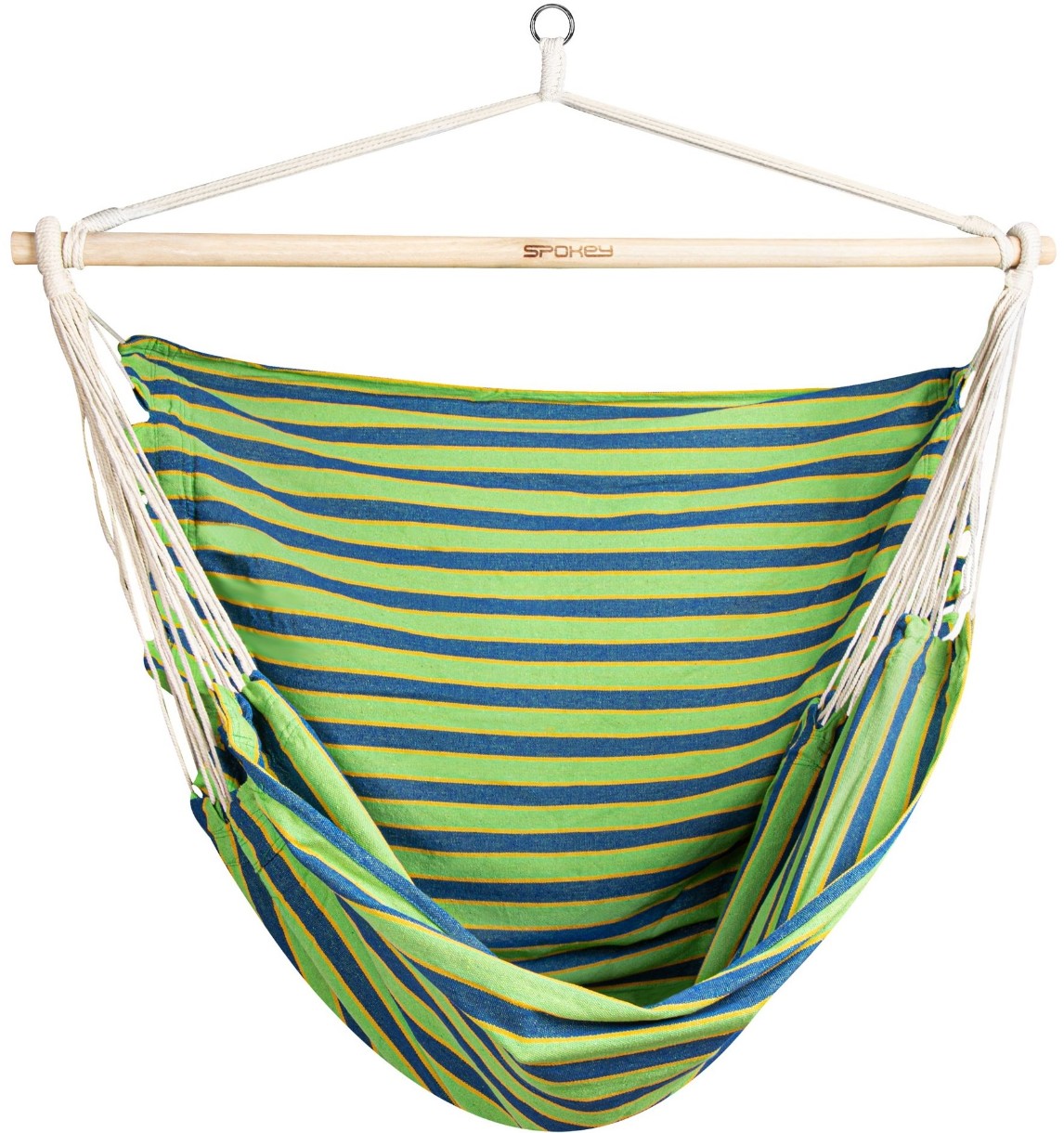 Visezi la un moment de relaxare savurând o cafea delicioasă cu o carte în mână? Alegeți un hamac confortabil care vă permite să vă relaxați confortabil în aer liber în grădină, pe terasă sau balcon, precum și în apartament, de exemplu, în camera de zi și dormitor. Hamacul brazilian Spokey BENCH DELUXE poate fi agățat fie de o ramură de copac, fie de un cârlig fixat corespunzător de tavan sau grindă. Acest model ocupă mult mai puțin spațiu decât hamacele de grădină standard și este mai lat (140 cm), astfel încât să poată fi folosit de două persoane în același timp.