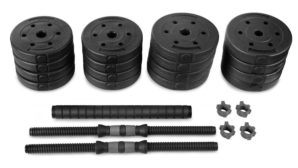 Setul de gantere din ciment PONDUS 30 permite ajustarea ușoară a greutății prin adăugarea unui număr variabil de discuri. Conectorul suplimentar permite unirea celor două bare scurte într-o halteră, extinzând astfel gama de exerciții pentru partea superioară și inferioară a corpului. Mânerele antiderapante asigură confortul și siguranța în timpul antrenamentului.