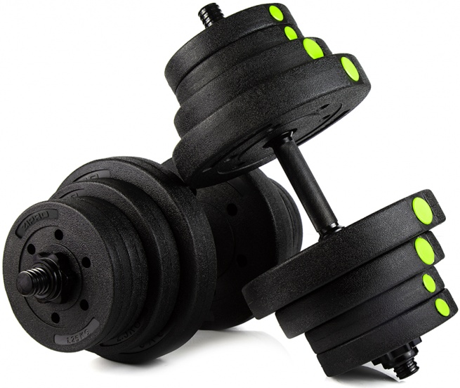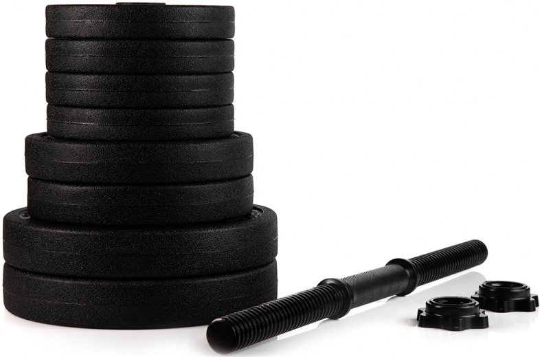 Gantere Zipro formate din două bare scurte de oțel lungi de 52 cm și încărcături cu o greutate totală de 40 kg. Plăcile sunt realizate din ciment acoperit cu un strat de plastic care salvează substratul în caz de cădere și depunere la sfârșitul seriei.