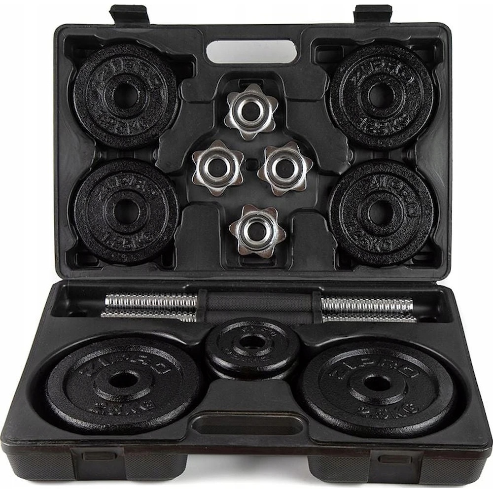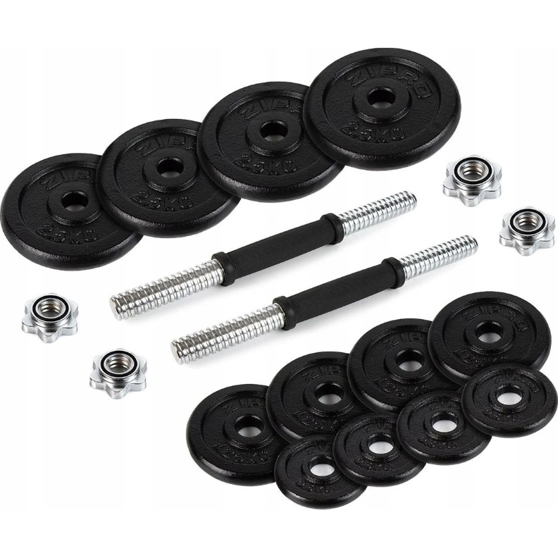 Ganterele Zipro sunt concepute pentru exerciții eficiente de întărire și modelare a mușchilor din partea superioară a corpului. Setul include greutăți cu o masă totală de 17 kg și două bare din oțel de 35 cm cu sisteme de prindere filetate. Totul este ambalat într-o valiză practică, ușor de depozitat și transportat.