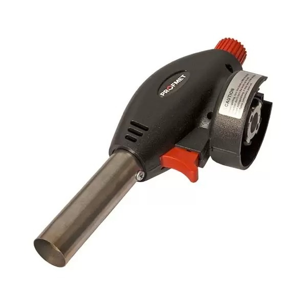 Arzător pe gaz cu buton de aprindere, tip cu canistră - este un instrument eficient pentru efectuarea diverselor lucrări legate de încălzire, lipire, încălzire și gătit. Este echipat cu un buton de aprindere convenabil, care asigură pornirea rapidă și sigură. Tipul de prindere cu canistră face ca înlocuirea gazului să fie rapidă și ușoară, iar designul compact permite utilizarea arzătorului în diferite condiții.