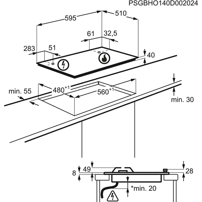 Dimensiune spatiu incorporare (LxA)4x59.5x51 cm