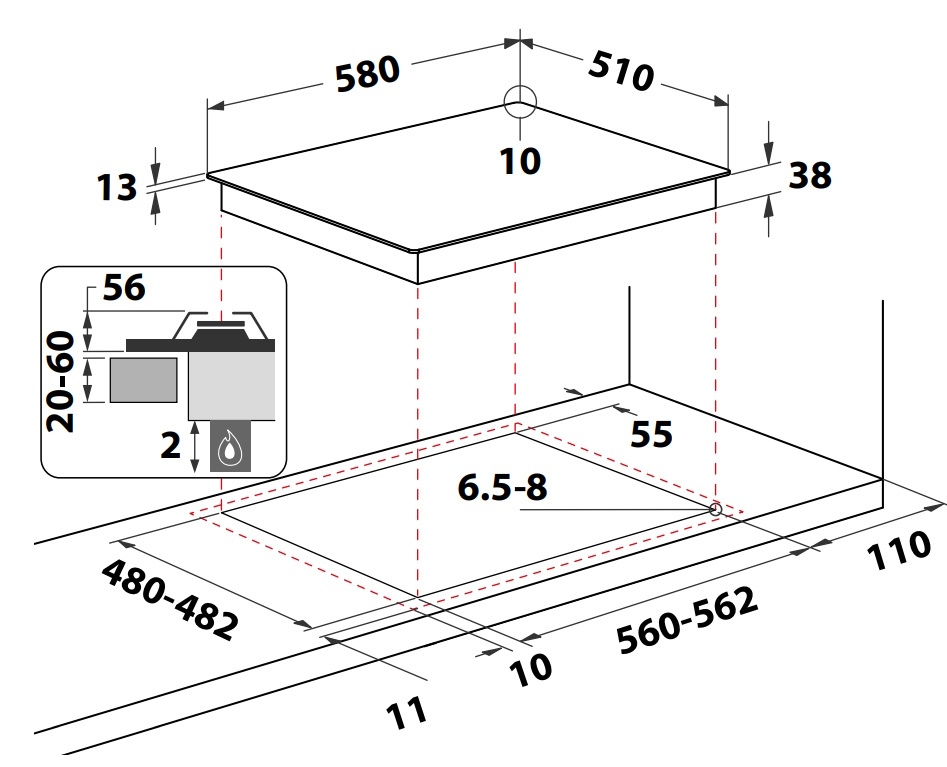 Dimensiune spatiu incorporare (LxA)56x48 cm