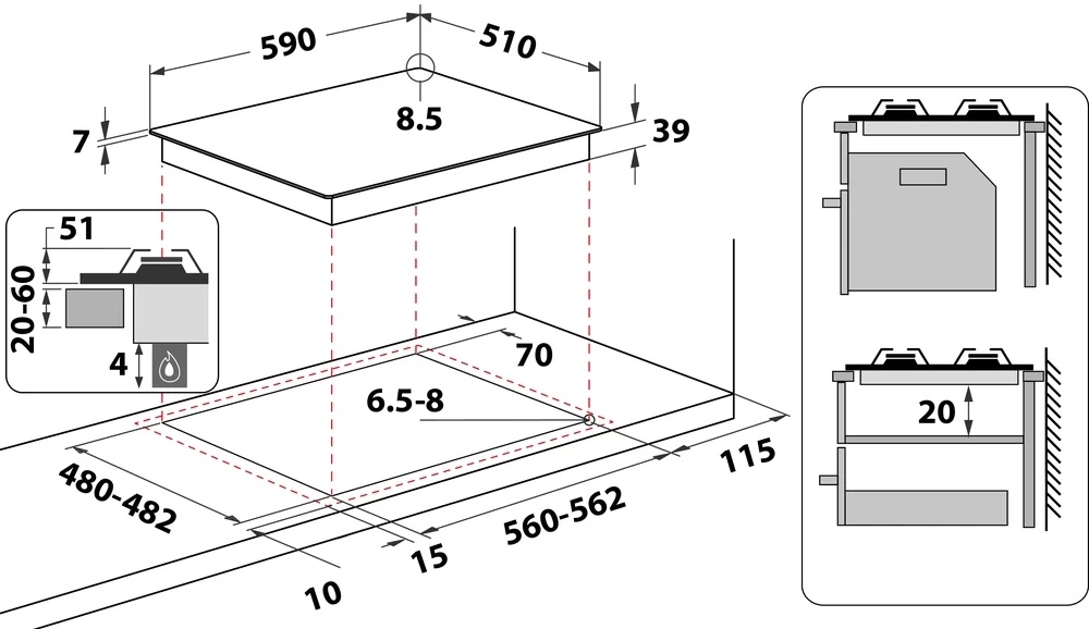 Plită incorporabilă cu gaz Whirlpool GMWL 628/IXL EE imaginea #3 — magazin online Desire.md