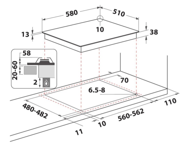 Dimensiuni plita (ÎxLxA)3.8x58x51 cm