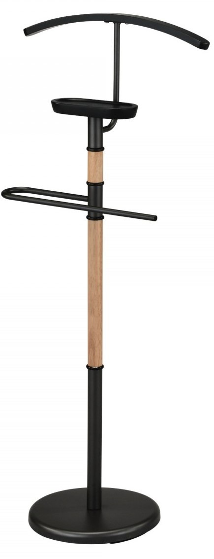 Suport pentru aranjarea hainelor pe umeraș realizat din structură metalică vopsită electrostatic cu elemente din lemn. Bază executată din plastic durabil, acoperită cu suprafață din metal vopsit.